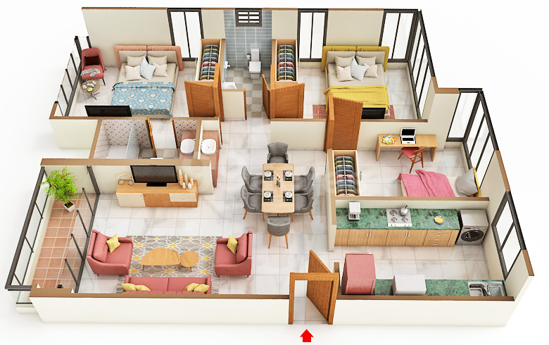 A thoughtfully planned 3 BHK home designed to elevate your everyday experience. Enjoy a luxurious master bedroom, two spacious secondary rooms, expansive living-dining area, balcony access, and efficient storage spaces. Perfect for growing families seeking convenience, style, and enhanced living comfort.