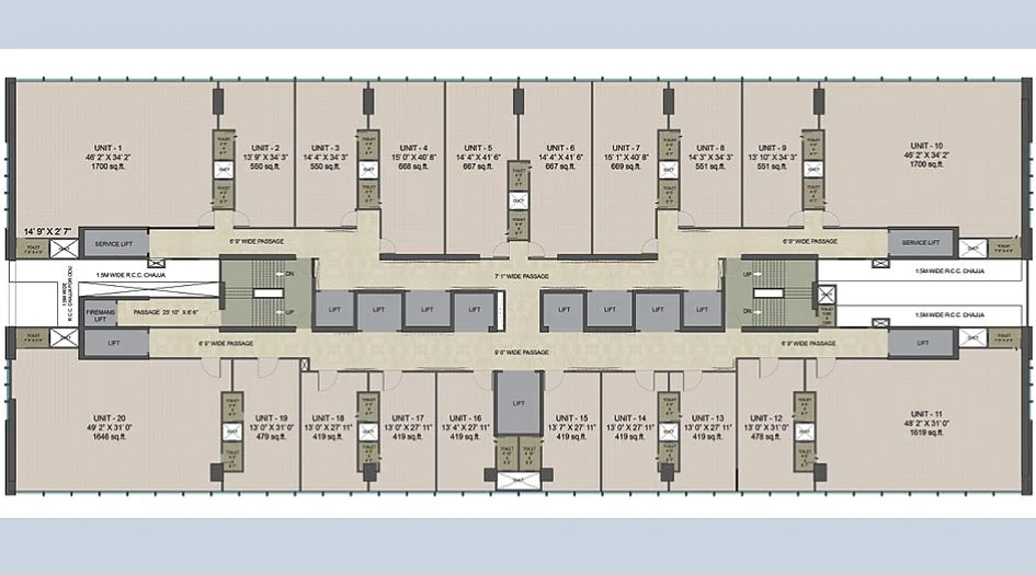 The office floor plans at Chandak Unicorn, Andheri West are thoughtfully designed to deliver maximum efficiency, flexibility, and professional functionality. Each office unit features optimized carpet areas that can be seamlessly configured into open workstations, private cabins, meeting rooms, and collaborative spaces.The layouts ensure smooth internal circulation, strategically placed service cores, and convenient access to high-speed elevators, supporting efficient daily operations. Large windows allow ample natural light and ventilation, creating a bright, healthy, and productive work environment.These scalable and customizable office floor plans make Chandak Unicorn an excellent choice for corporates, startups, IT firms, and professional services seeking a Grade A commercial address in Andheri West.